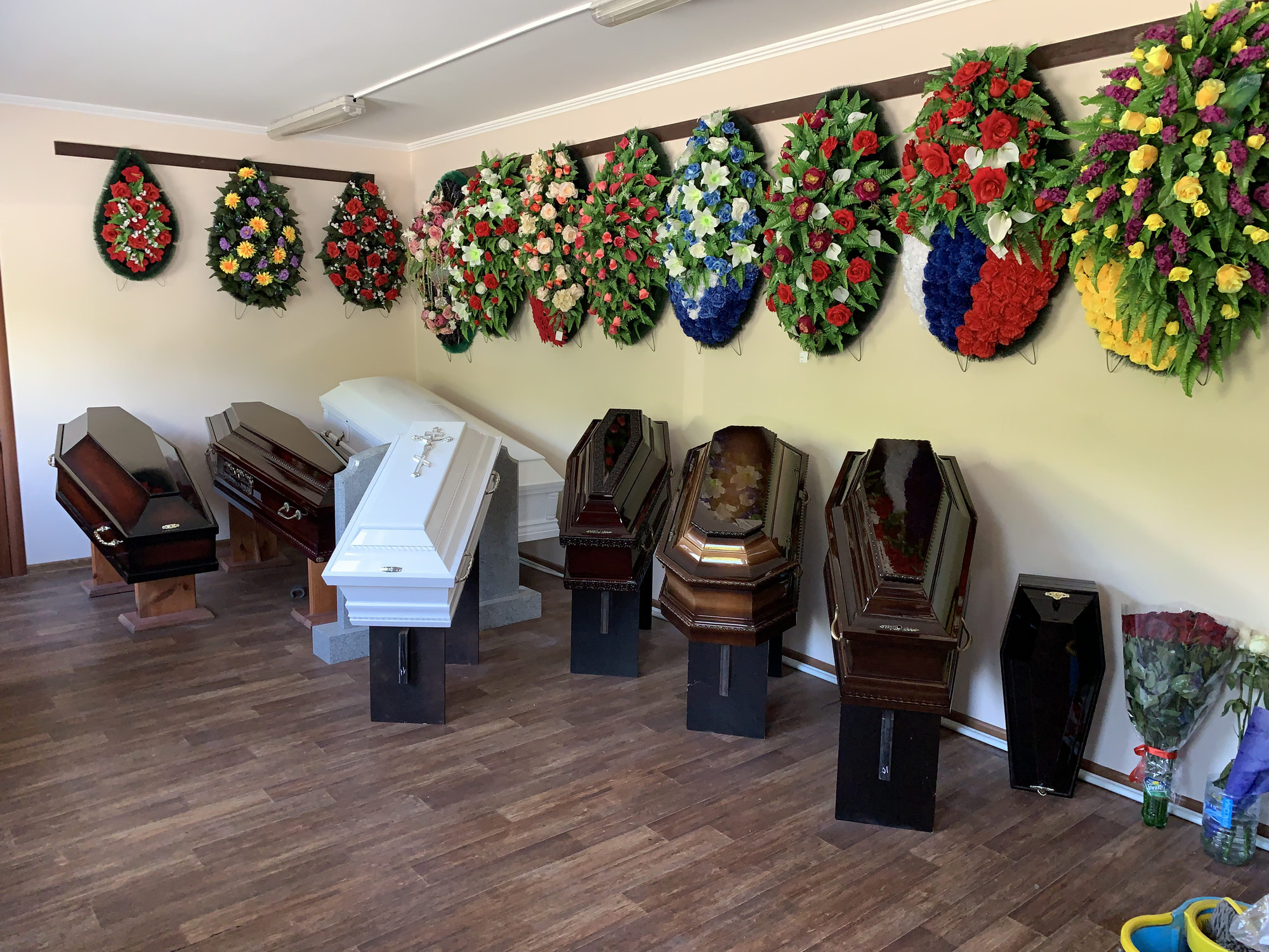 Наша компания более 10 лет работает на рынке ритуальных услуг Екатеринбурга, за это время, у нас появилось много надежных партнеров по России и странам СНГ. У нас есть свой траурный зал для прощания с умершим, также собственное производство лакированных гробов.