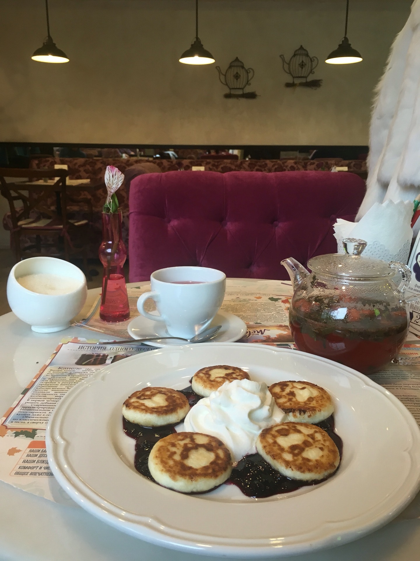 Очень уютное приятное место. Попробовала здесь сырники из творога со сметаной и соусом солёная карамель - пальчики оближешь!