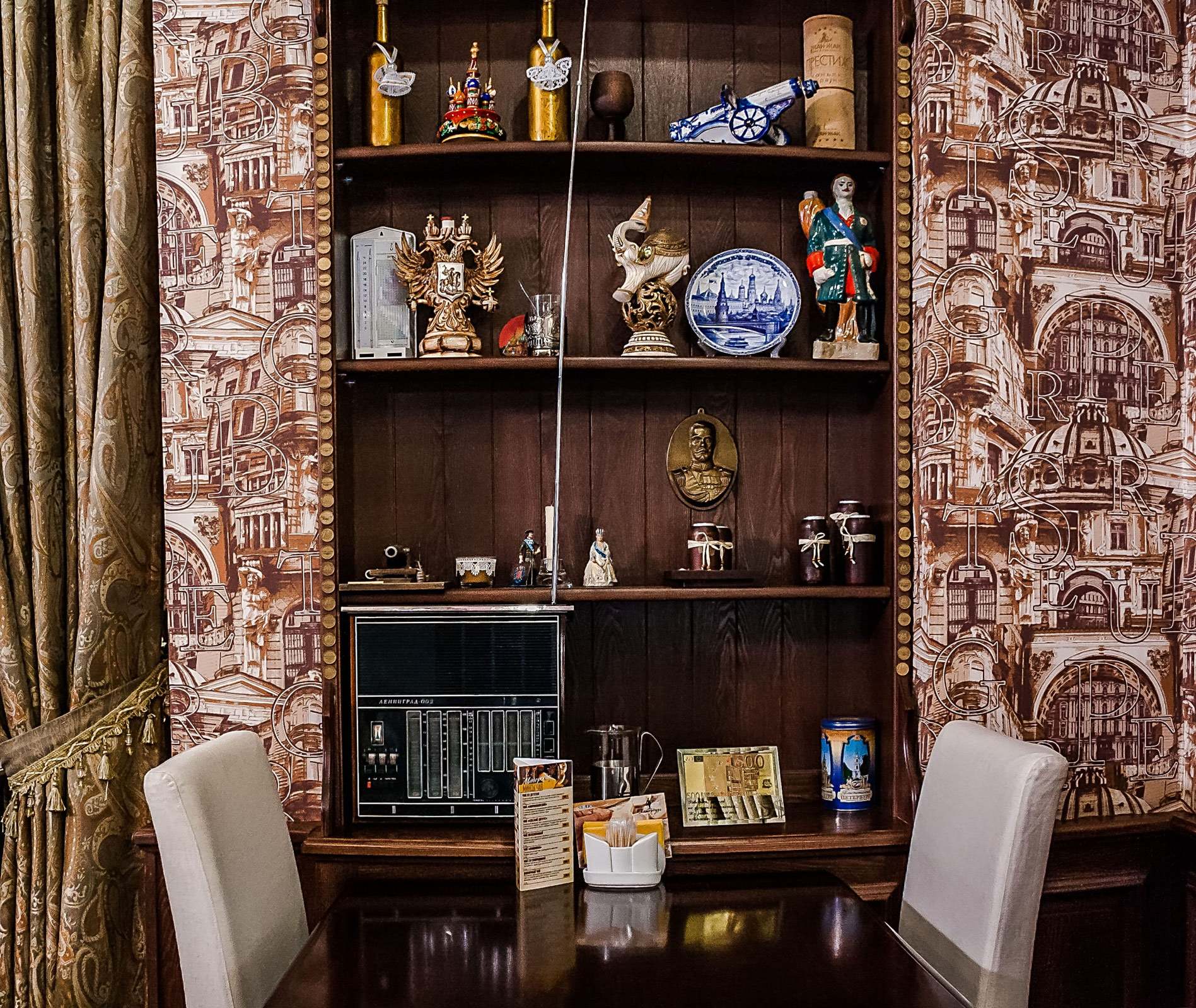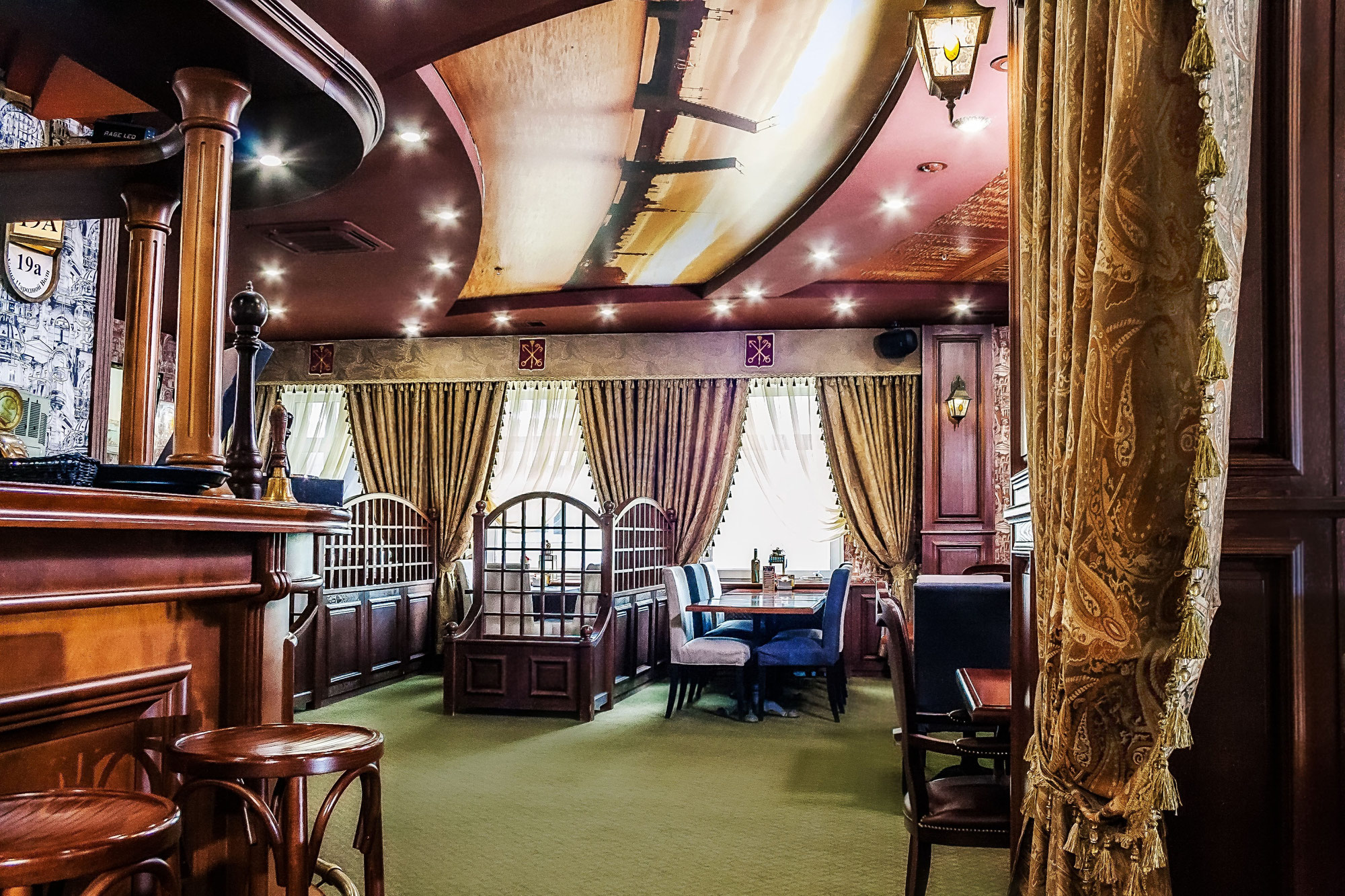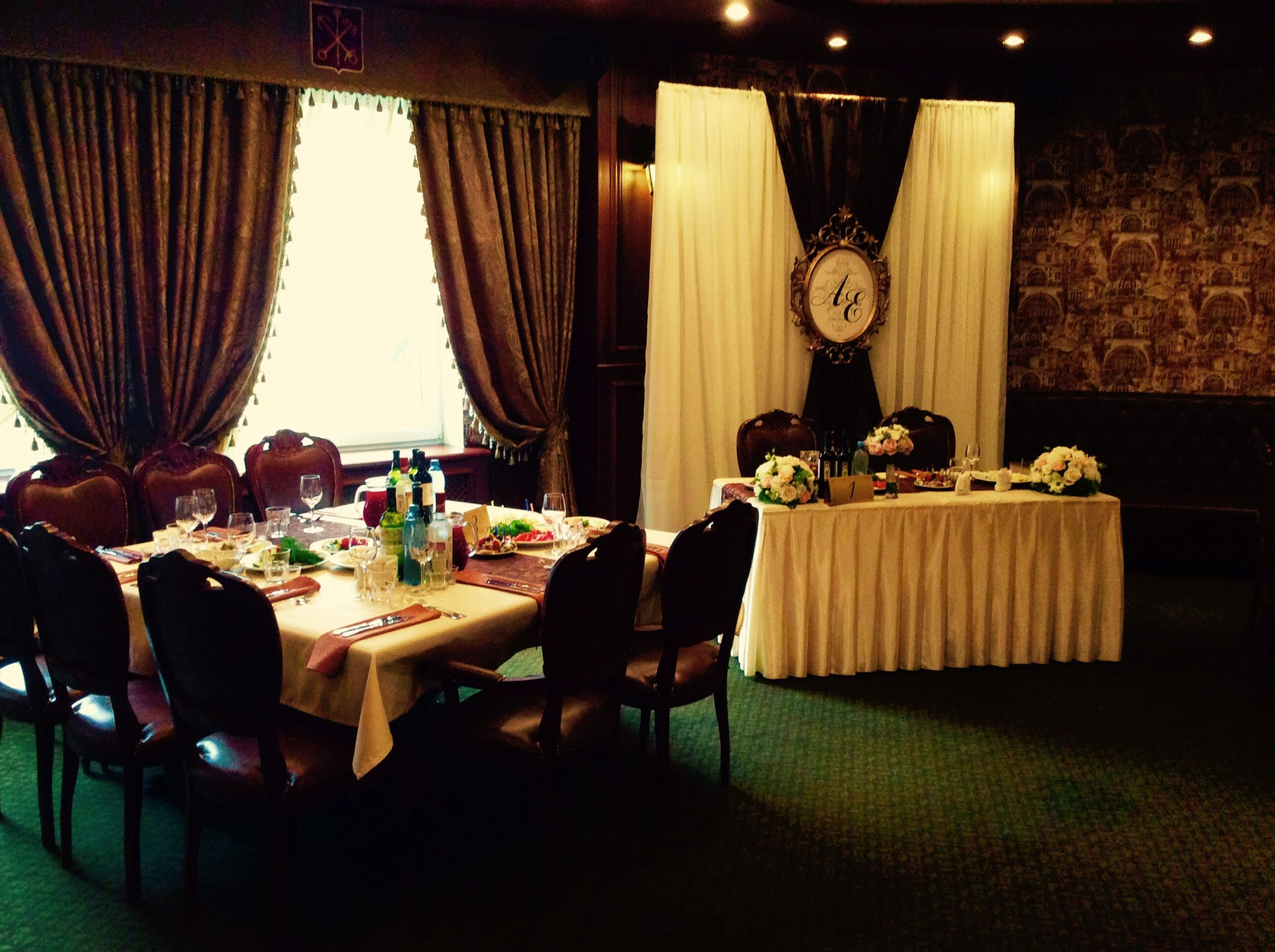 Наш зал может принять до 60 гостей, которые, переступая порог «Петербурга», тут же перенесутся в эпоху Петра Великого, гениальных русских поэтов и почувствуют себя настоящими аристократами.