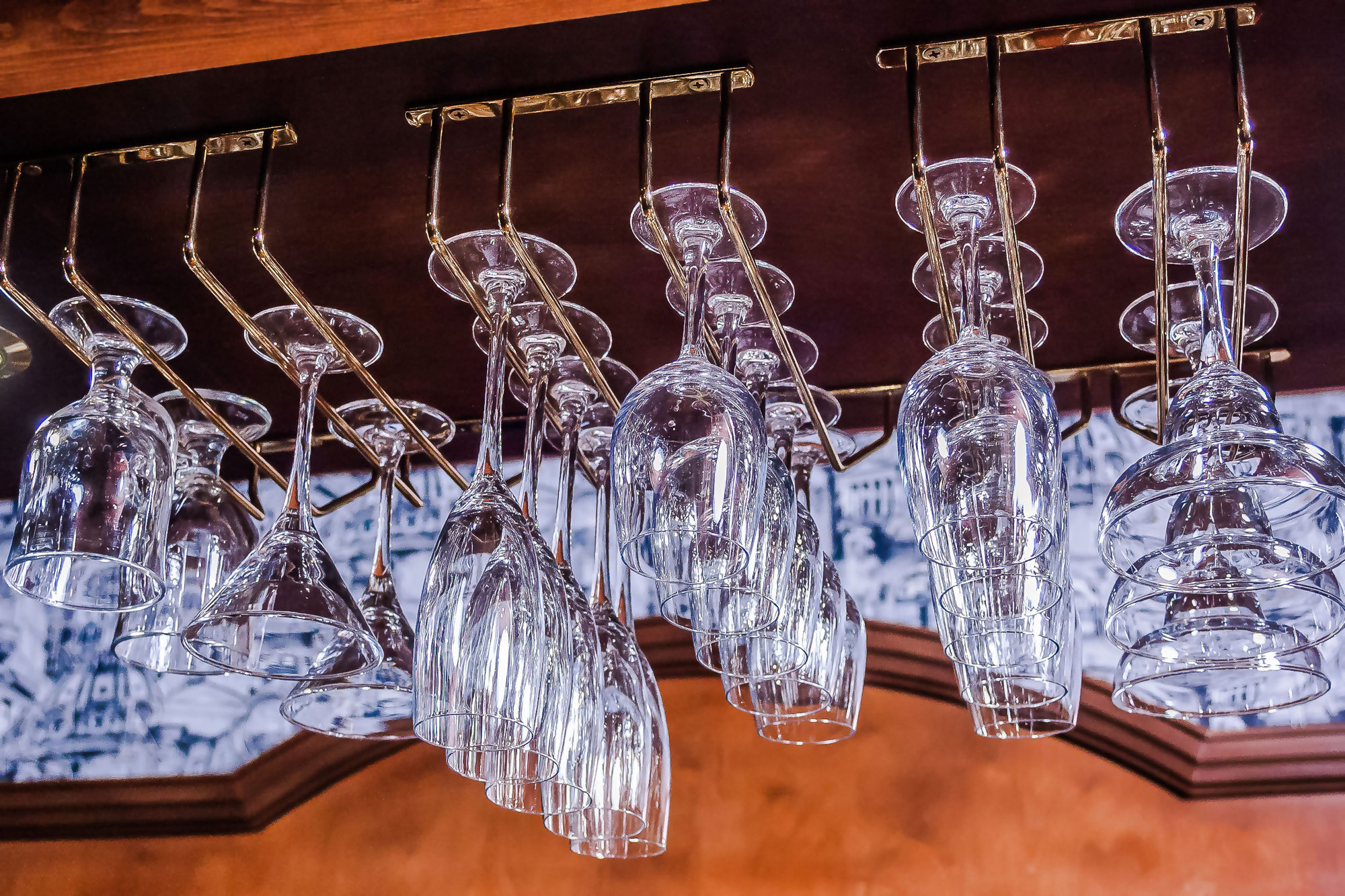 На столах крайне неэстетично стоят пустые зеленые винные бутылки, рекламирующие холодный чай и прочее "летнее предложение".