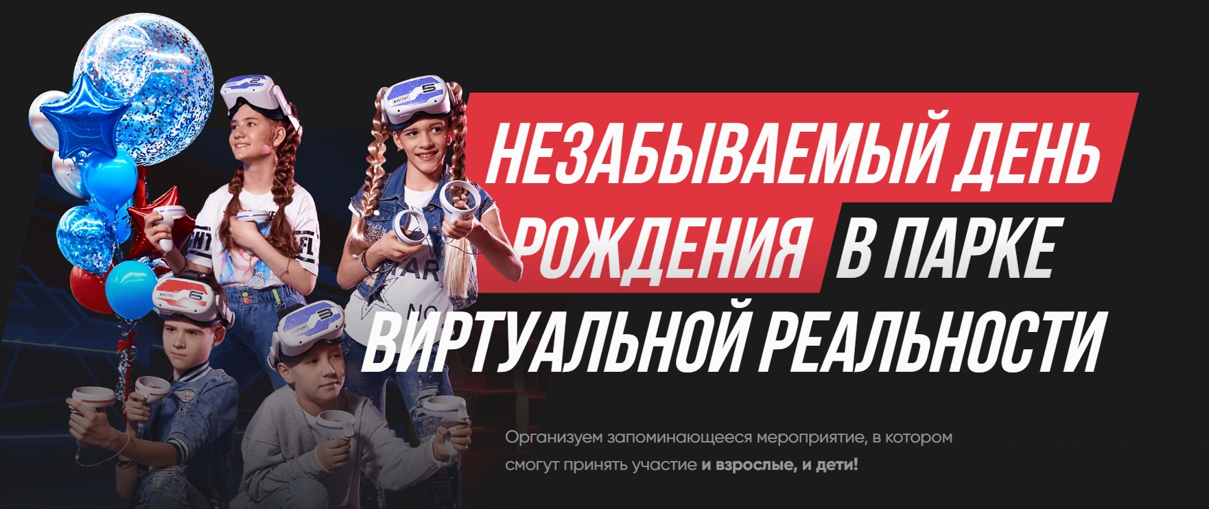 Проведите незабываемый день рожденя в парке виртуальной реальности WARPOINT. Организуем запоминающееся мероприятие, в котором смогут принять участие и дети, и взрослые. Более 50 разнообразных игр: от веселых и активных до спокойных и познавательных. Дети могут поиграть сами или устроить соревнования с родителями. Мы можем провести любое мероприятие: пока часть гостей развлекаются на VR-арене или аттракционах, остальные гости могут есть, пить и общаться в специальной лаундж-зоне. Мы делаем праздник под ключ: ярко украсим площадку шариками, пригласим фотографа, обеспечим музыкальное сопровождение. Вам не придется ломать голову о том, где купить торт и никто не забудет про свечи.