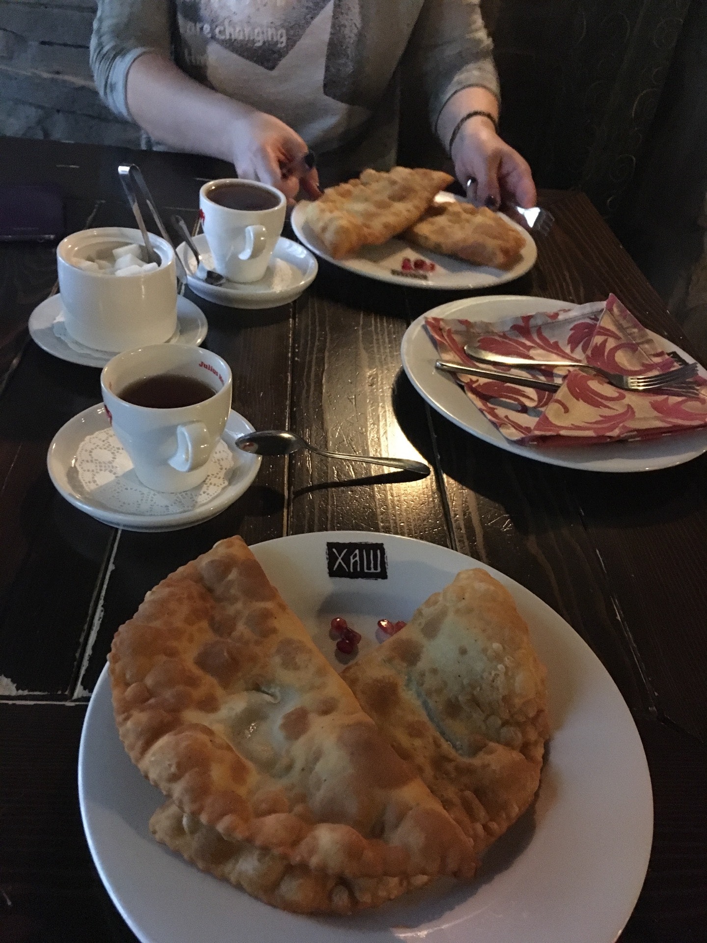 Очень милые официанты!!! Молодцы ребята :) всё очень вКусно ) я правда мясо не ем) но мне понравились хачапури ) и нравится что всегда много ЗЕЛЕНИ приносят к БЛЮДАМ ;)