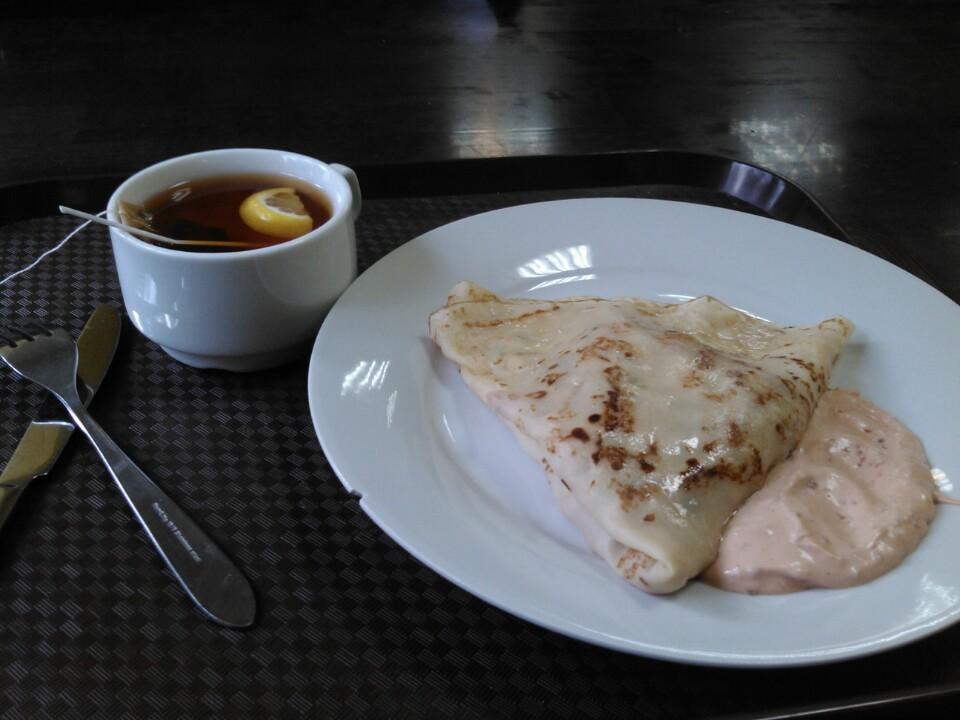 Блины сытные очень!))) цены радуют! Начинает можно комбинировать))) я беру всегда с вишней и подливку-шоколад !)) за уши не оттащишь!!)))
